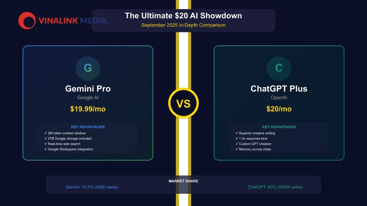 So sánh trực tiếp: Khi nào nên chọn ChatGPT vs Gemini?