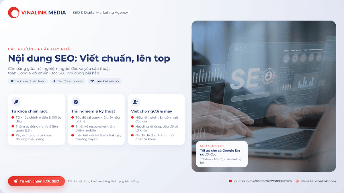 Việc cân bằng giữa SEO và trải nghiệm người dùng là điều cần thiết để nội dung trên website vừa thu hút được độc giả, vừa đạt thứ hạng cao trên công cụ tìm kiếm. Dưới đây là những chiến lược quan trọng để tối ưu hiệu quả: