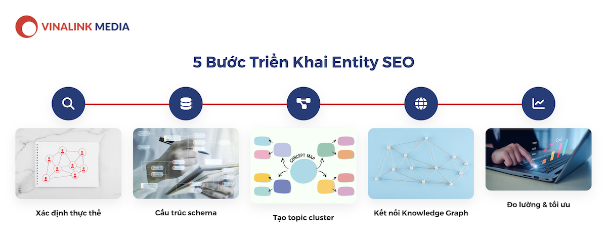 Để bắt đầu triển khai entity SEO, SMEs cần lập danh sách toàn bộ thực thể liên quan đến thương hiệu như công ty, sản phẩm, dịch vụ, địa điểm và nội dung chính, sau đó ánh xạ chúng bằng Schema.org một cách nhất quán trên website và các nền tảng liên quan.