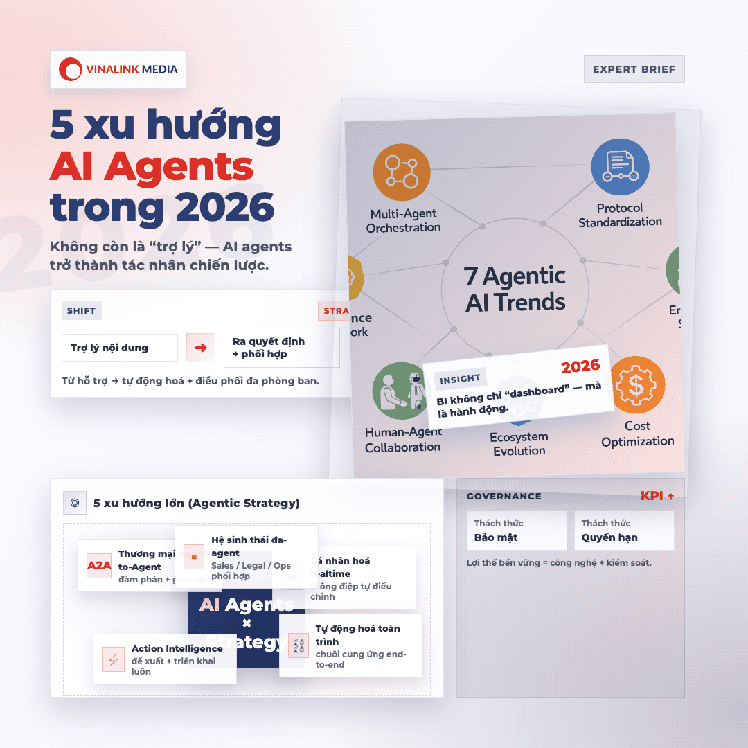 Các xu hướng này không chỉ tạo đột phá trong hiệu suất mà còn thách thức doanh nghiệp về bảo mật và kiểm soát quyền hạn. Nhưng với cách tiếp cận đúng, AI agents sẽ là lực đẩy chính của lợi thế cạnh tranh từ 2026 trở đi.