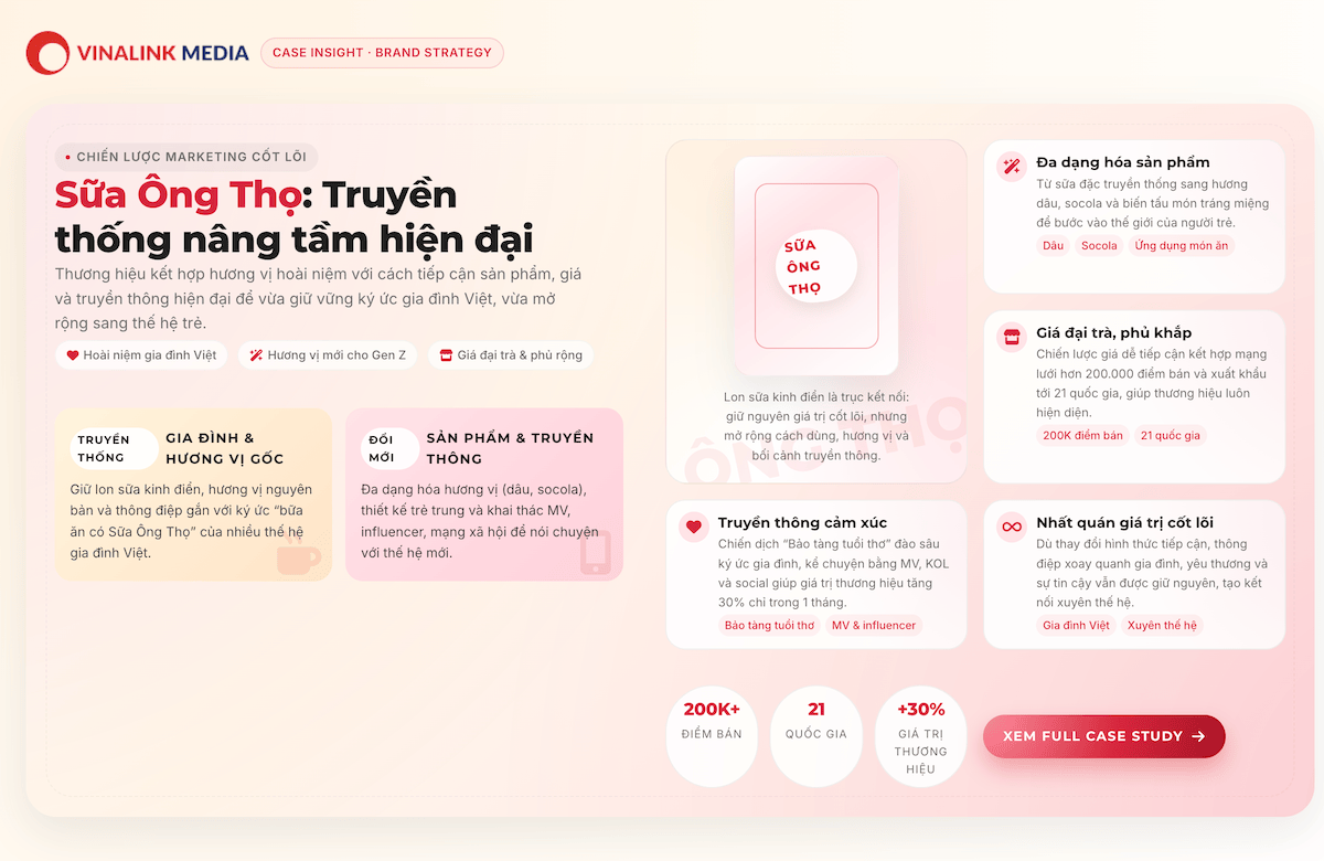 Chiến lược marketing của Sữa Ông Thọ kết hợp hài hòa giữa truyền thống và đổi mới để giữ vững vị thế và mở rộng thị trường.