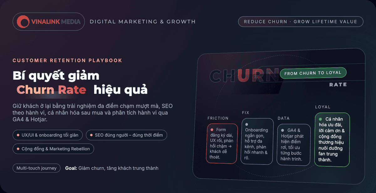 Áp dụng phối hợp các chiến lược này không chỉ giảm churn mà còn tăng trưởng bền vững từ chính khách hàng trung thành của bạn.