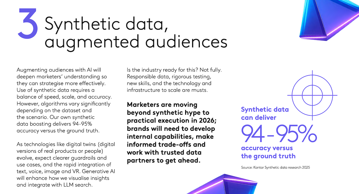 Dữ liệu tổng hợp (synthetic data) mang lại hiệu quả gần như ngang bằng dữ liệu thật (độ chính xác 94–95%) nhưng không đòi hỏi thu thập thông tin cá nhân, giúp doanh nghiệp vừa tăng tốc độ triển khai vừa tuân thủ luật bảo mật. Song song, việc thay thế cookie bằng dữ liệu tự nguyện từ người dùng (zero-party) tạo dựng niềm tin bền vững.