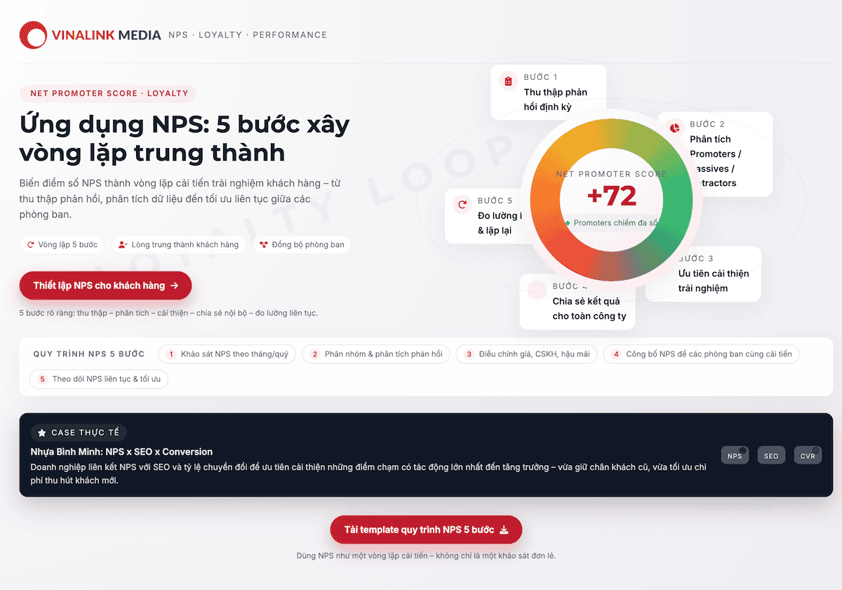 Một minh chứng thực tế là Nhựa Bình Minh đã liên kết NPS với SEO và tỷ lệ chuyển đổi để tăng trưởng hiệu quả, chứng minh rằng đo lường lòng trung thành không chỉ giúp giữ chân khách cũ mà còn tối ưu chi phí thu hút khách mới.