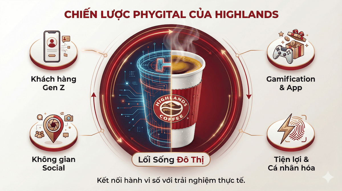 Điểm nổi bật trong chiến lược của Highlands là việc xây dựng hệ sinh thái số toàn diện: tận dụng Zalo làm kênh chăm sóc khách hàng chính, tối ưu app để tăng tương tác, kết hợp influencer để kích hoạt hành vi tiêu dùng thực tế. Họ không chỉ thu hút người dùng mới bằng khuyến mãi hấp dẫn mà còn giữ chân khách hàng bằng chương trình tích điểm cá nhân hóa và trải nghiệm mượt mà trên mọi điểm chạm.